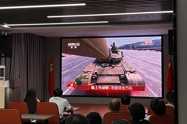 上午9時,閱兵式正式開始。當嘹亮的國歌聲響起,全體員工自發(fā)起立,齊聲高唱,莊嚴的氛圍感染著現(xiàn)場每一個人。分列式上,中國人民解放軍將士們步伐鏗鏘、意氣風發(fā);新型武器裝備依次亮相,展現(xiàn)出現(xiàn)代化國防力量的強大實力;一個個震撼人心的畫面,讓在場員工心潮澎湃,民族自豪感油然而生。閱兵儀式令人心潮澎湃,不僅增強了民族自豪感,也更深刻體會到和平的珍貴與奮斗的意義。